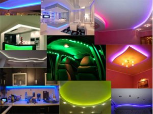 Многоцветная подсветка интерьера светодиодными лентами RGB (кухни, потолки, закарнизная подсветка и многое другое), управление с пульта дистанционного управления в метровом диапазоне радиус действия до 20 м.
